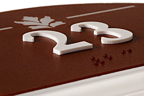- Features raised letters, symbols and Grade 2 Braille to comply with the ADA.