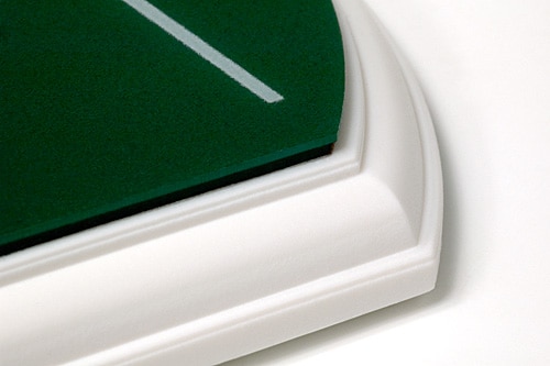 - Decorative backplate with beveled edges.