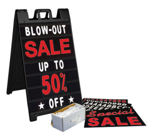 practically read to go. This package includes one Black Signicade® stand and a Black changeable message sign kit.